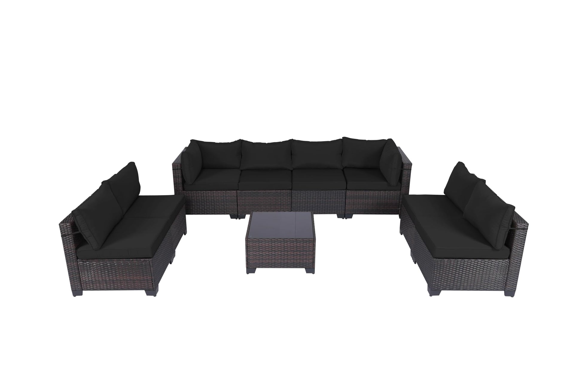 LEVELEVE 7 Pieces Outdoor Patio Furniture Sets,Rattan Conversation Sectional Set,Manual Weaving Wicker Patio Sofa with Tea Table
