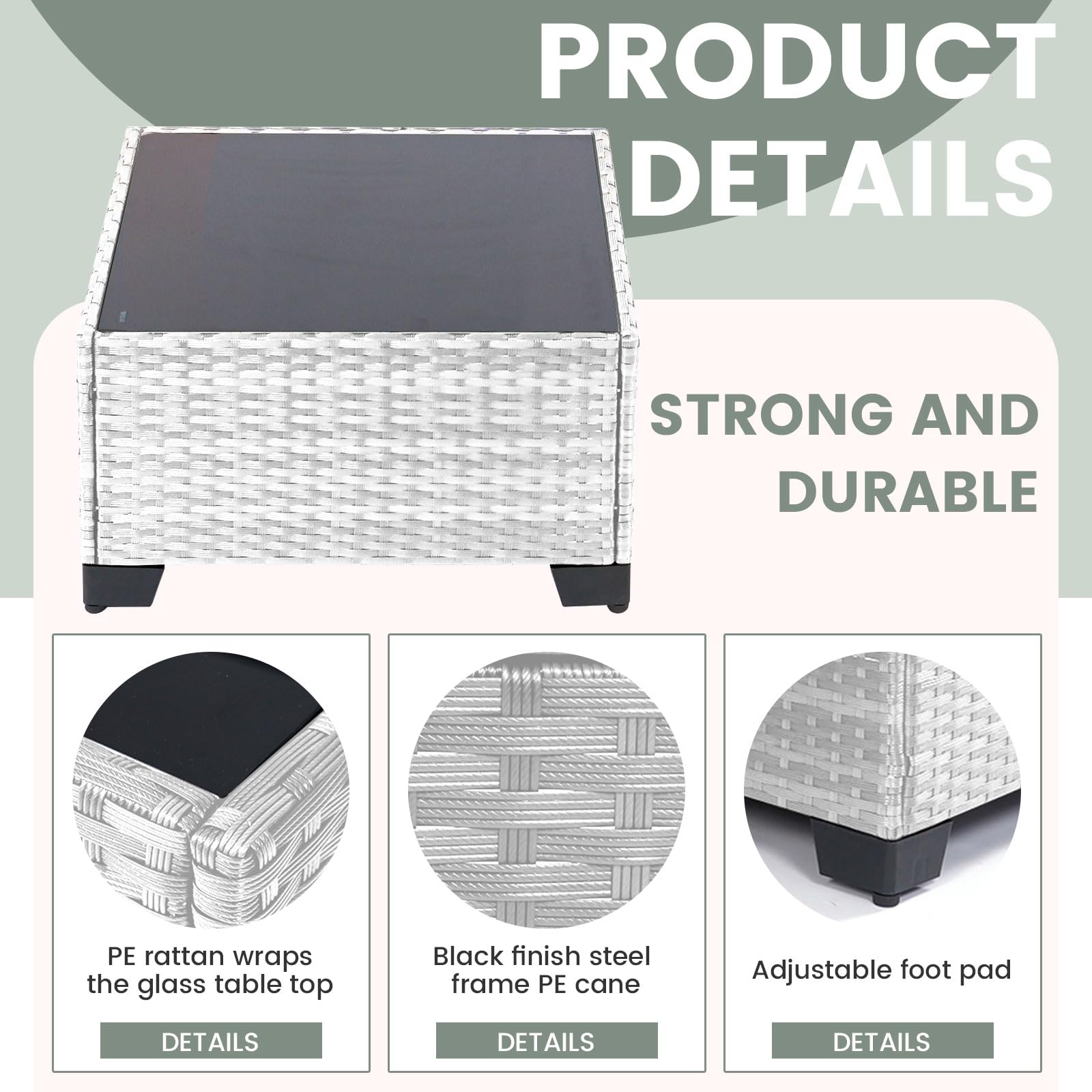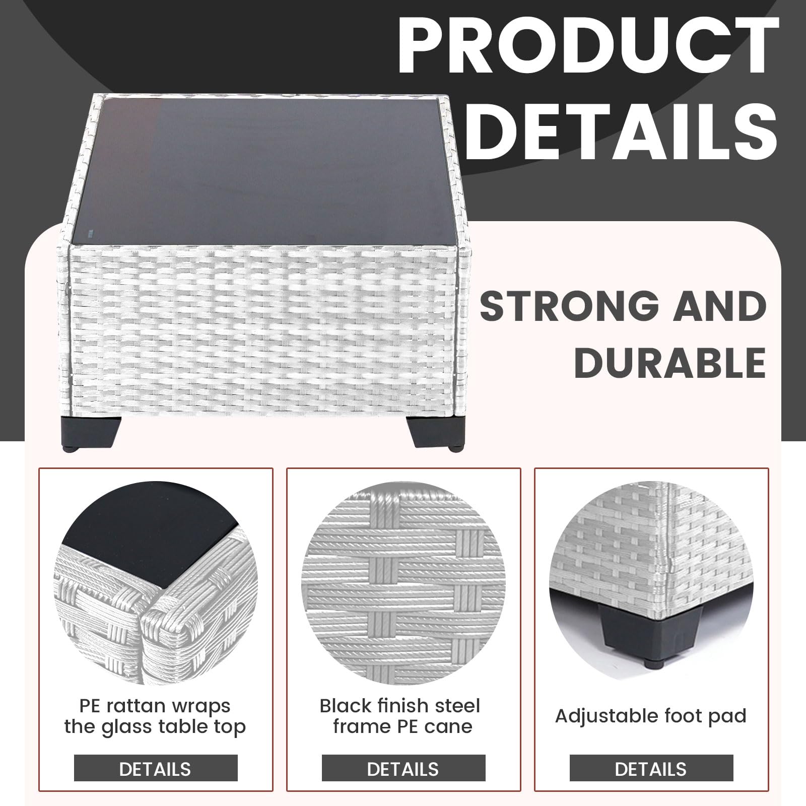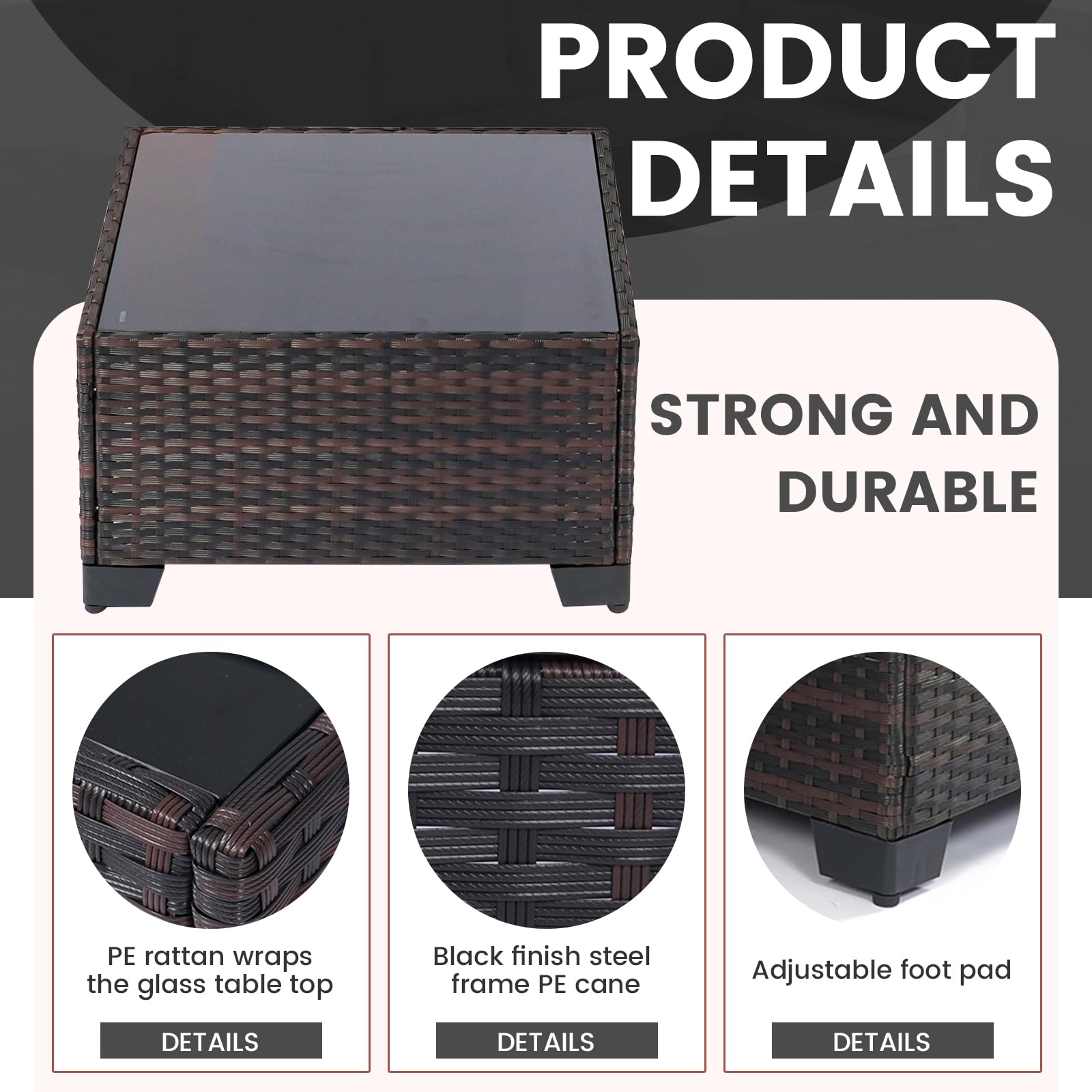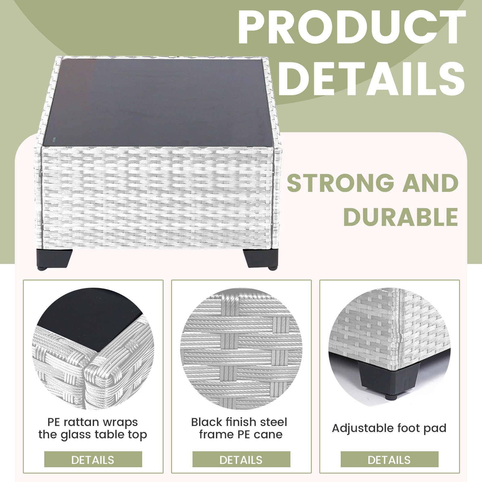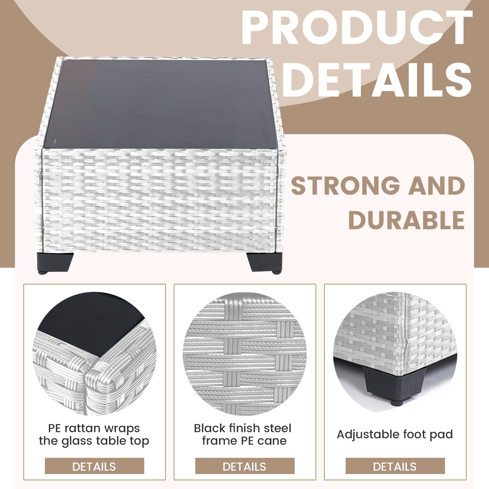 - Easy Cleaning:Tempered glass top for the coffee table is easy for wipe cleaning.Zippered cushion of wicker patio furniture have removable, machine-washable covers that are easy to clean.Note:The cushions are water resistant,not waterproof.Please cover patio sets or bring them inside to make them last longer if you don’t use them.