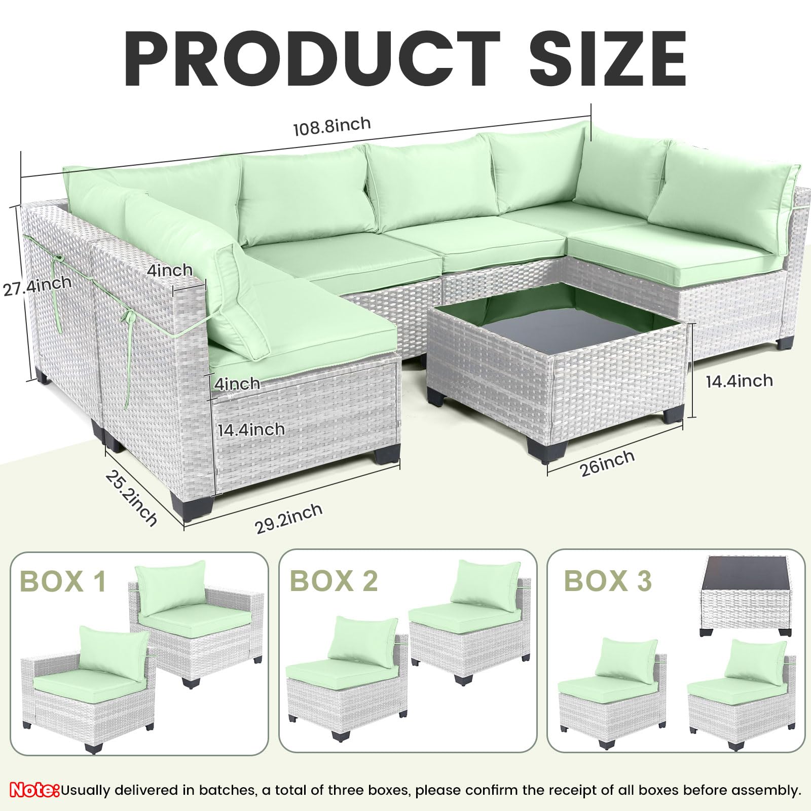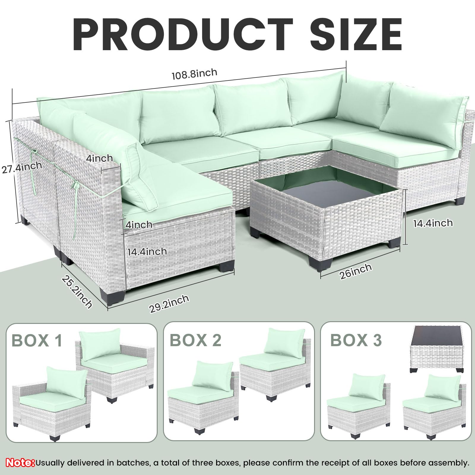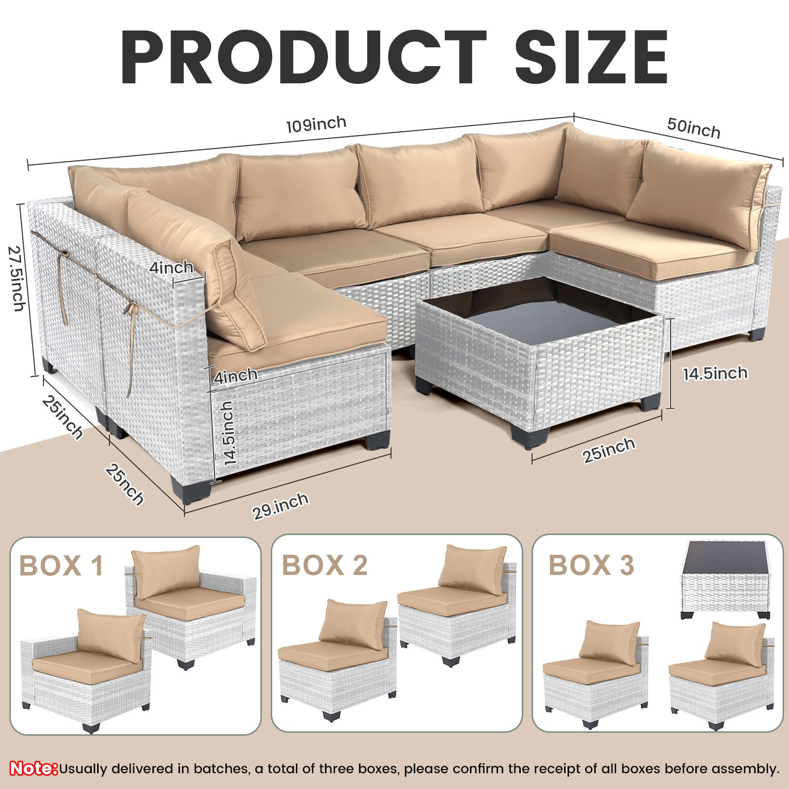 - Customer Support:If there is any question or any part missing or damaged during shipping, please contact us.Outdoor sectional sofa is delivered with 3 boxes from domestic.You may not get all boxes at the same time. We recommend assembling the set after receiving all boxes.