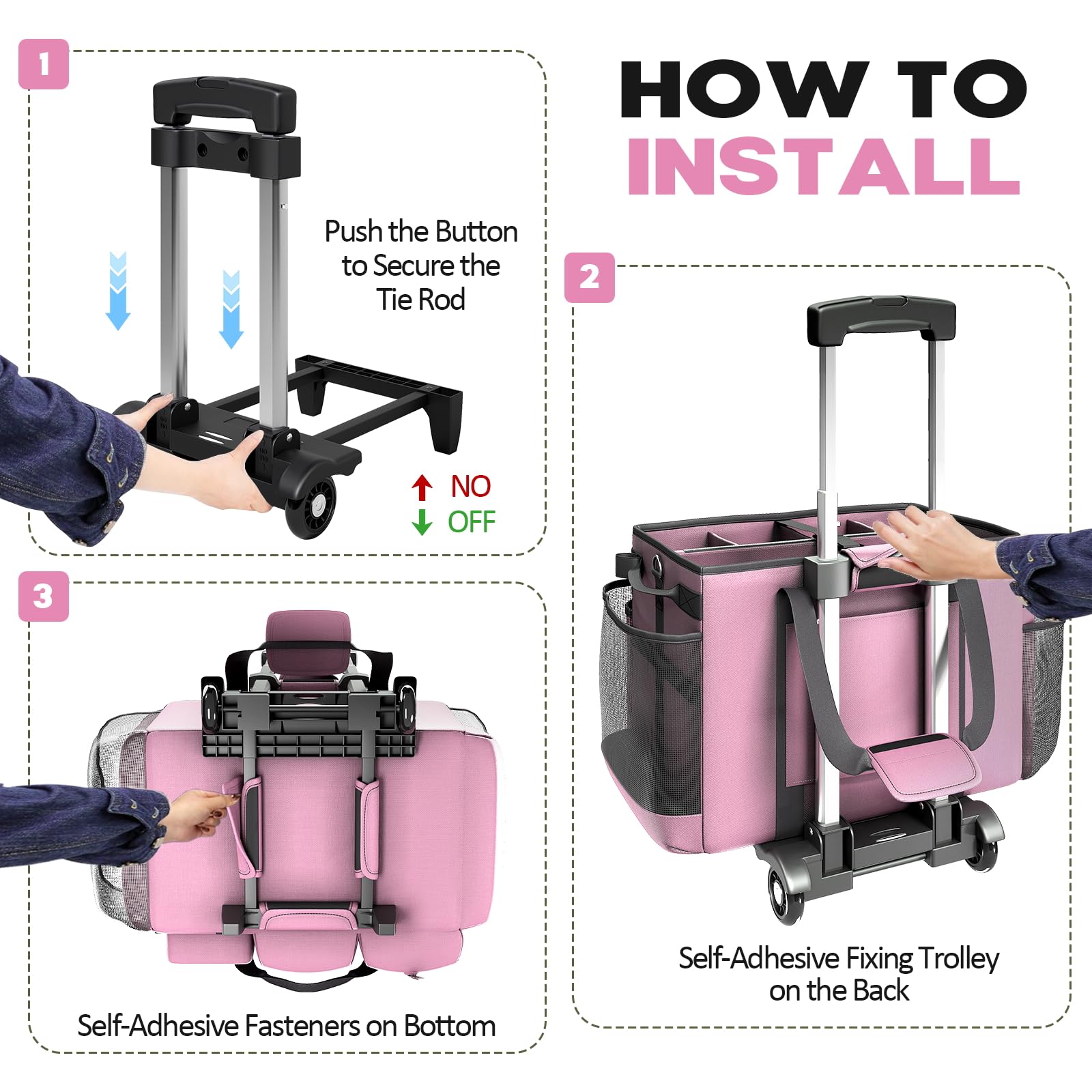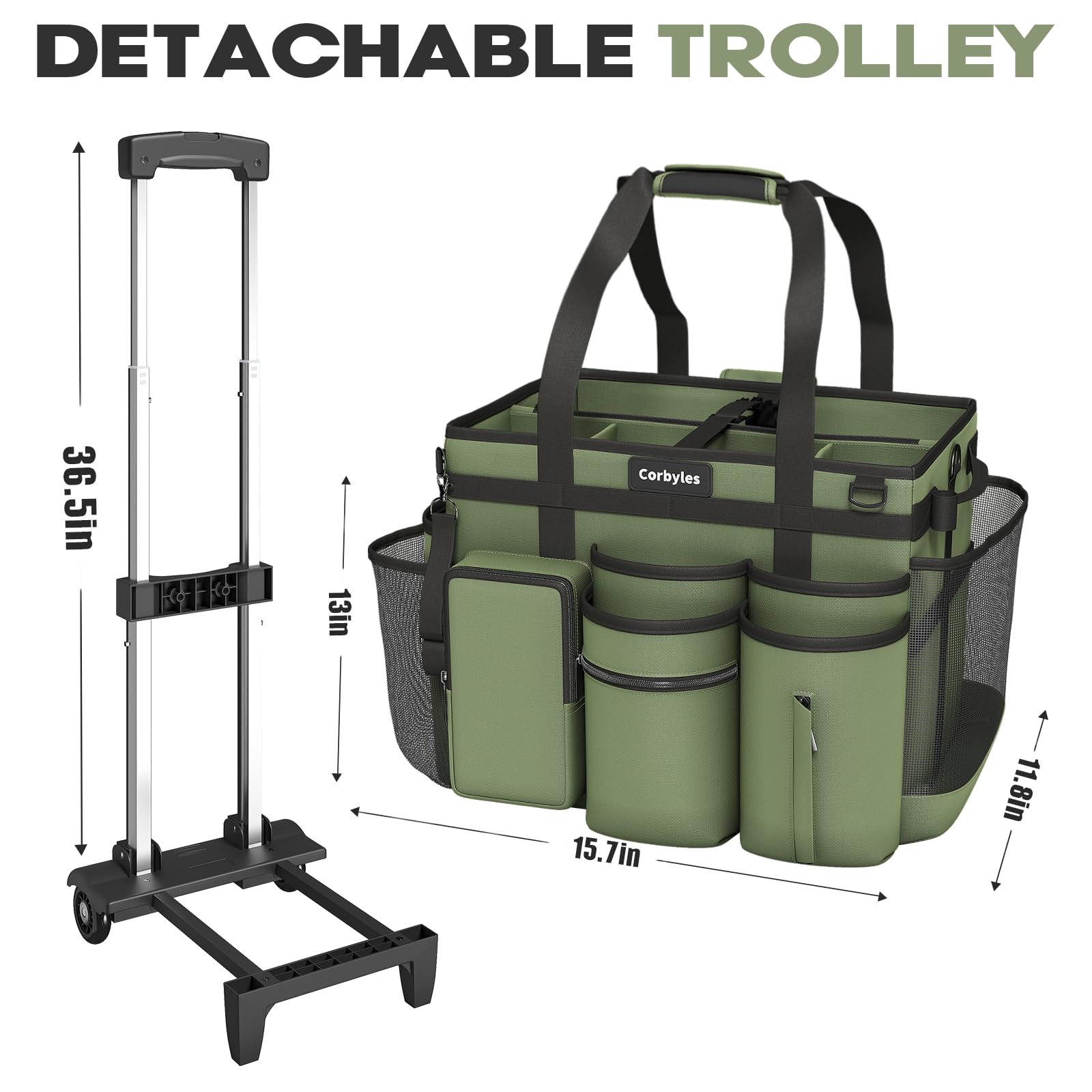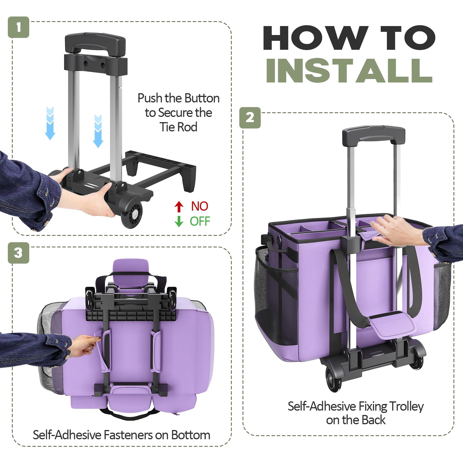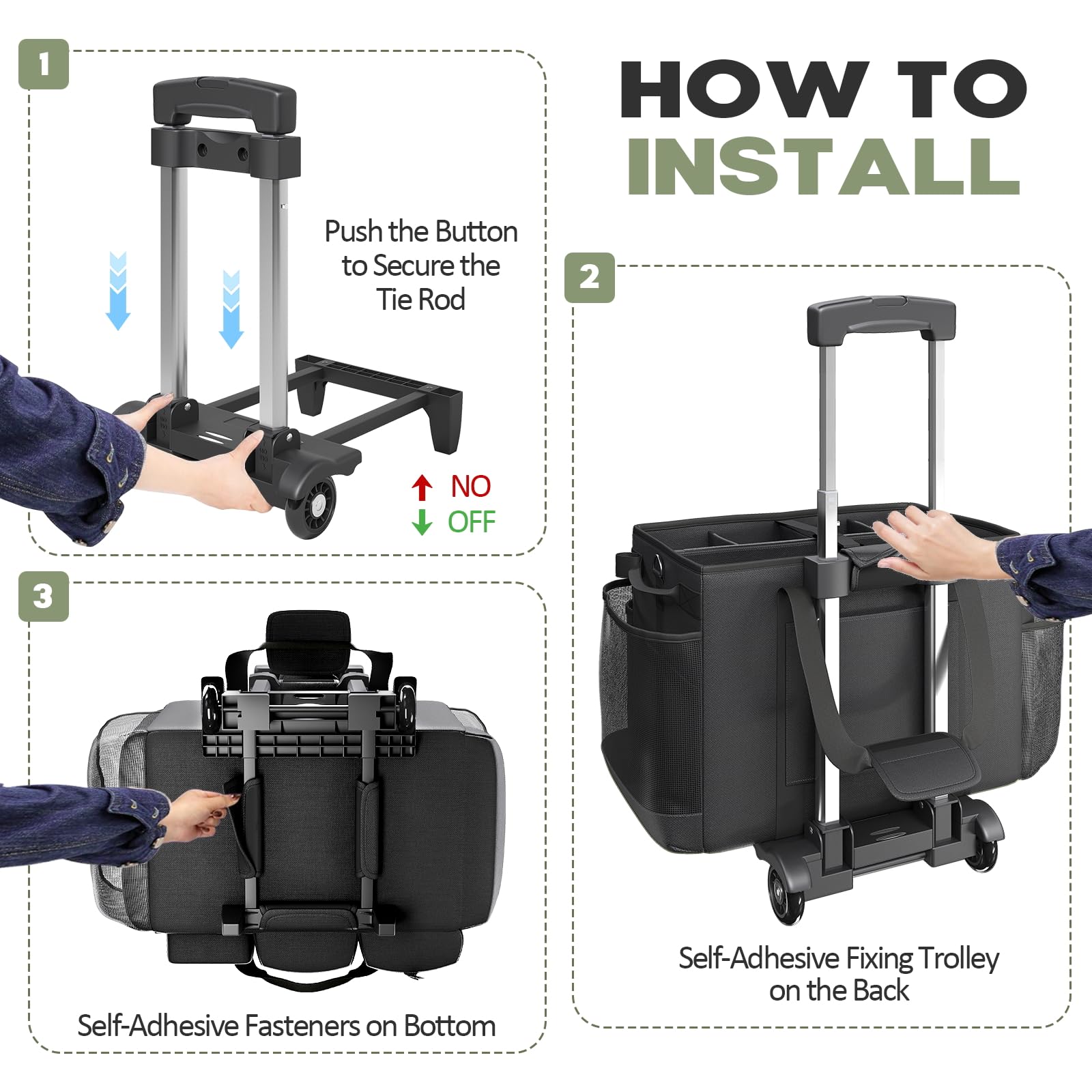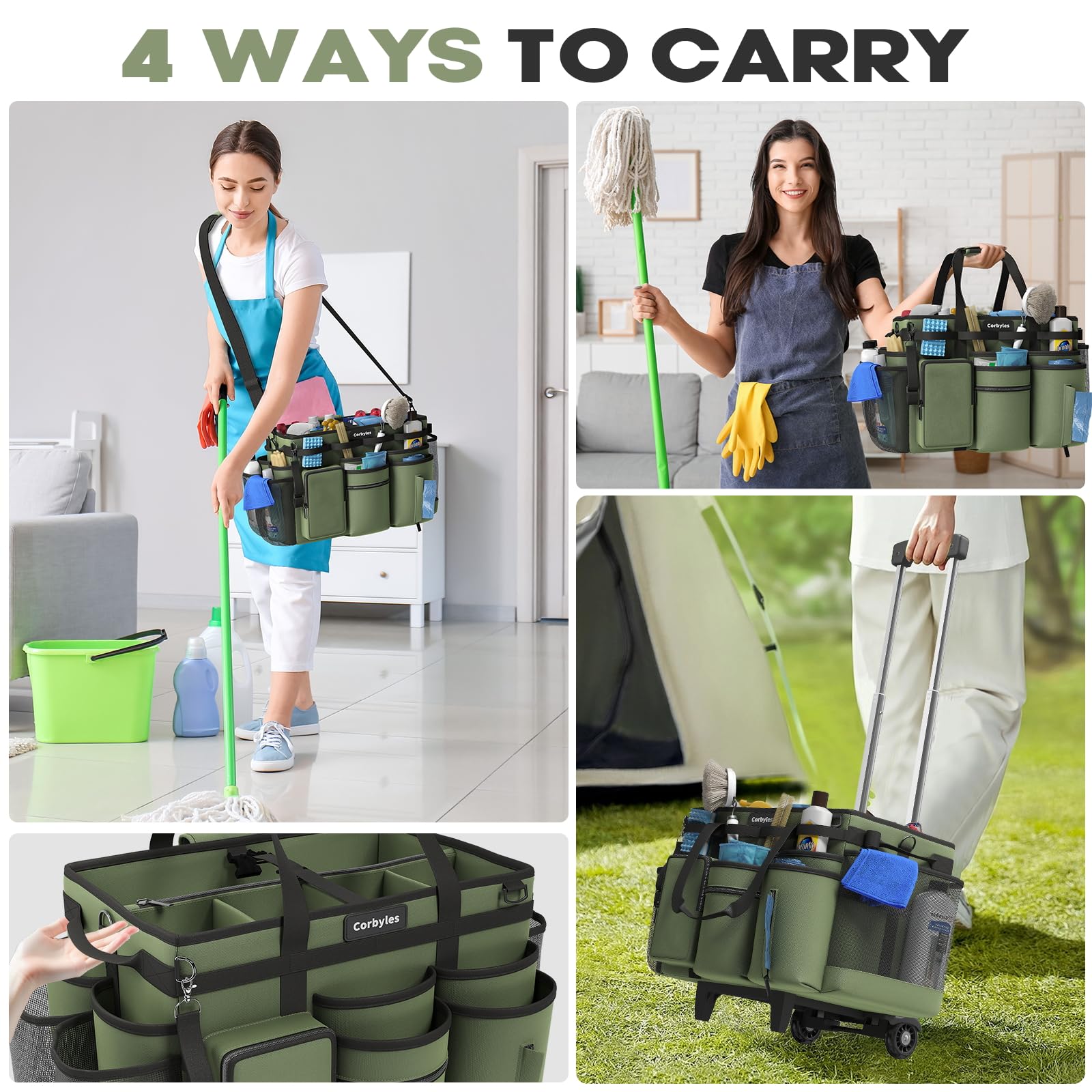 - 4 Carrying Ways: This housekeeping tote bag has 2 reinforced padded carry handles, 2 short side carry handles, 1 detachable telescopic trolley and 1 adjustable shoulder strap, multiple ways to use for various cleaning and transportation scenarios. The cleaning cart with wheels is a great companion for cleaning professionals who need to work on the go and make your cleaning work easier.